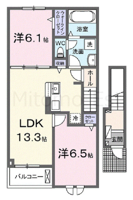| 間取詳細 | LDK13.3帖 洋室6.1帖・6.5帖 | ||