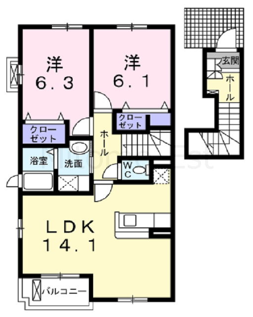 2LDK 56.25m2 ( 17.01坪 ) |
