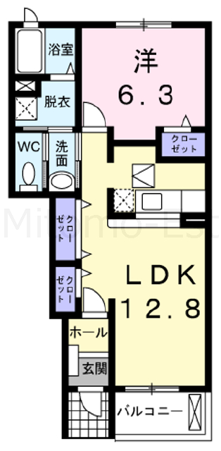 1LDK 42.63m2 ( 12.89坪 ) |