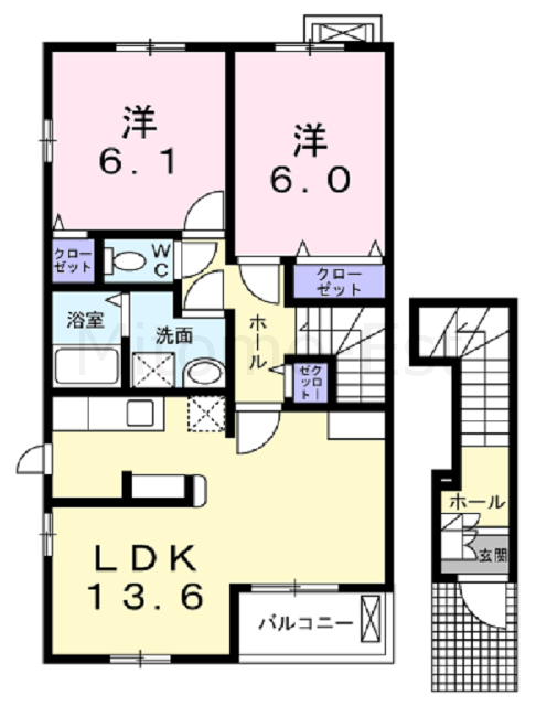 | 間取詳細 | LDK13.6帖 洋室6.0帖・6.1帖 | ||