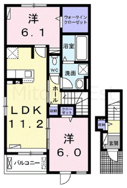 | 間取詳細 | LDK11.2帖 洋室6.0帖・6.1帖 | ||