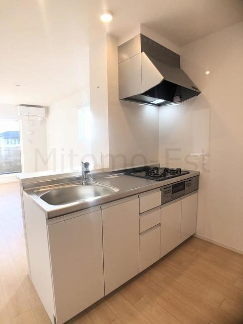 | 特色・設備 | バストイレ別、追焚機能、一坪風呂、浴室乾燥機、シャワートイレ、シャンプードレッサー、洗面所独立、カウンターキッチン、浄水器(ご利用の際,別途カートリッジ代が必要)、収納スペース、全居室収納、ウォークインクローゼット、シューズボックス、室内洗濯機置場、室内物干し、給湯、プロパンガス、ペアガラス、全居室フローリング、エアコン2台、BS、インターネット無料、モニター付インターホン、シャッター雨戸、火災警報機(報知機)、防犯カメラ、バルコニー、駐輪場、駐車場、敷地内ゴミ置場、角部屋、最上階、振分、二階以上、洋室