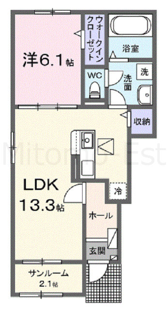 | 間取詳細 | LDK13.3帖 洋室6.1帖 サンルーム2.1帖 | ||