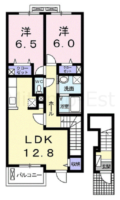 | 間取詳細 | LDK12.8帖 洋室6.0帖・6.5帖 | ||